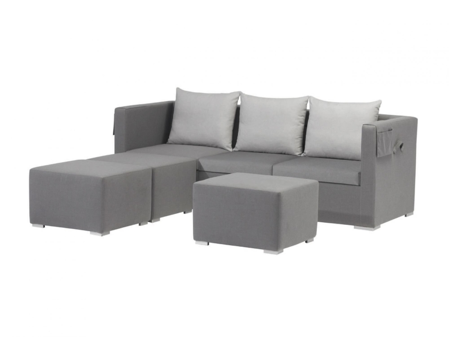 Zu jedem Set gehören 1 Sofa, 3 Hocker, 3 Rückenkissen, eine Schutzabdeckung sowie 3 Sitzpolster. Alle Komponenten sind aus 100% Polyester hergestellt und werden zur Selbstmontage geliefert.