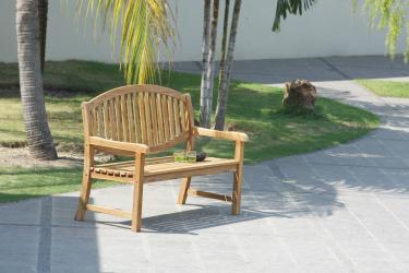 Gefertigt aus Teakholz, bekannt für seine Beständigkeit und Widerstandsfähigkeit gegen Witterungseinflüsse, garantiert die Sitzbank Langlebigkeit. Die Beschläge aus Edelstahl unterstreichen die hohe Qualität und fördern die Dauerhaftigkeit des Produkts. Die Lieferung erfolgt mit Selbstmontageanleitung.